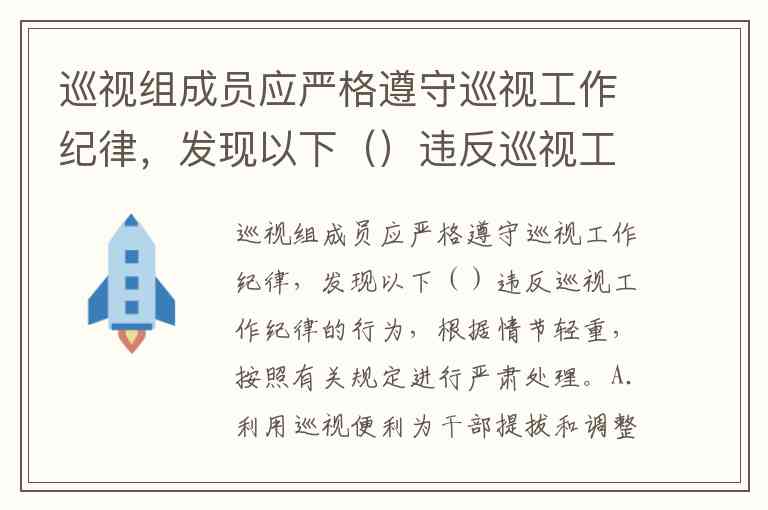 巡视组成员应严格遵守巡视工作纪律,发现以下()违反巡视工作纪律的行为,根据情节轻重,按照有关规定进行严肃处理。A.利用巡视便利为干部提拔和调整打招呼 B.与巡视工作无关的费用个人自理 C.涉足有损巡视人员形象和声誉的场所 D.向被巡视单位提出其他个人要求