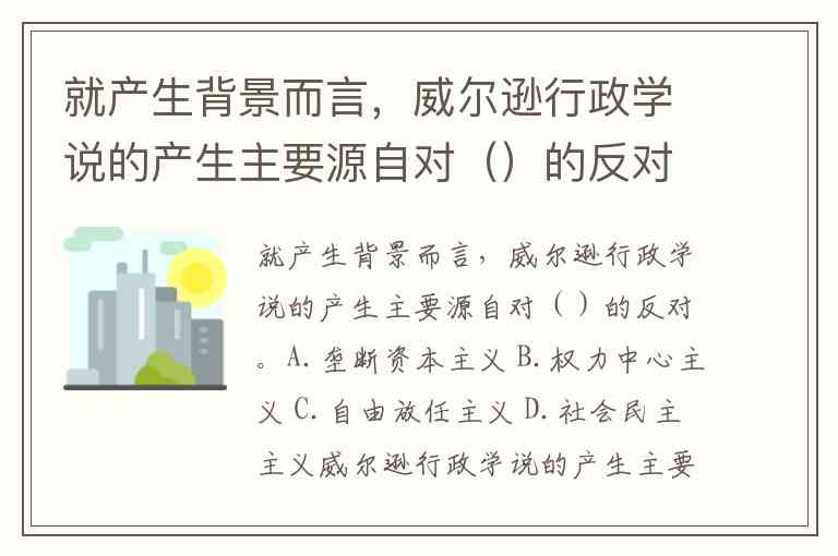就产生背景而言,威尔逊行政学说的产生主要源自对()的反对。A.垄断资本主义 B.权力中心主义 C.自由放任主义 D.社会民主主义