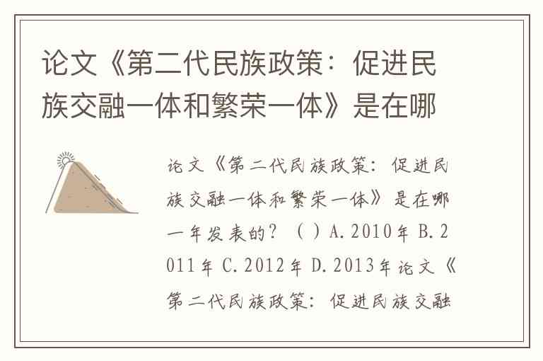 论文《第二代民族政策:促进民族交融一体和繁荣一体》是在哪一年发表的?()A.2010年 B.2011年 C.2012年 D.2013年