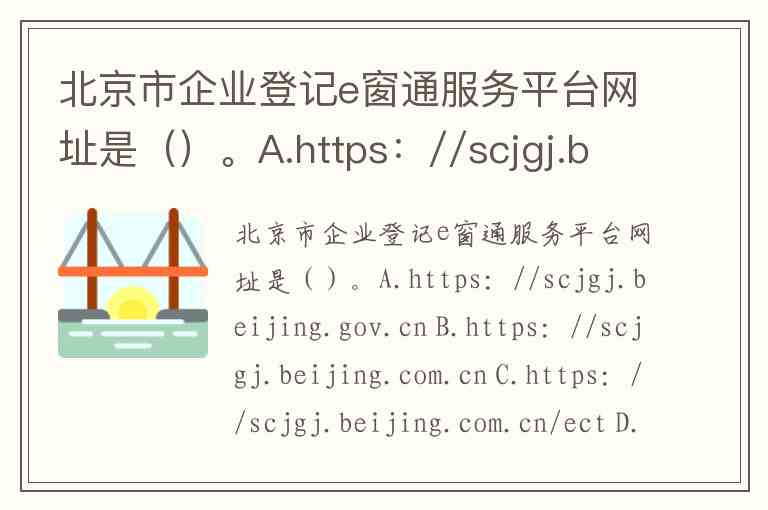 北京市企业登记e窗通服务平台网址是()。A.https://scjgj.beijing.gov.cn B.https://scjgj.beijing.com.cn C.https://scjgj.beijing.com.cn/ect D.https://scjgj.beijing.gov.cn/ect