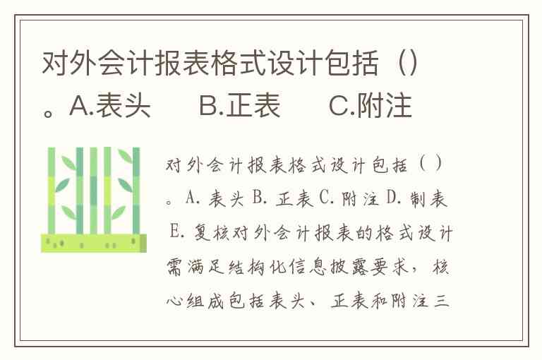 对外会计报表格式设计包括()。A.表头 B.正表 C.附注 D.制表 E.复核