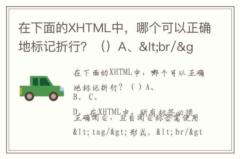 结论:正确答案为 A。XHTML对语法要求严格,所有空标签(如换行、图片)必须显式闭合,<br/>是唯一符合标准的折行方式。