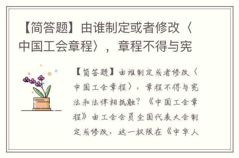 【简答题】由谁制定或者修改〈中国工会章程〉,章程不得与宪法和法律相抵触?