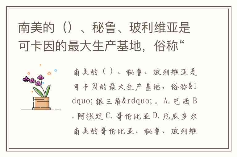 南美的()、秘鲁、玻利维亚是可卡因的最大生产基地,俗称“银三角”。A.巴西 B.阿根廷 C.哥伦比亚 D.厄瓜多尔