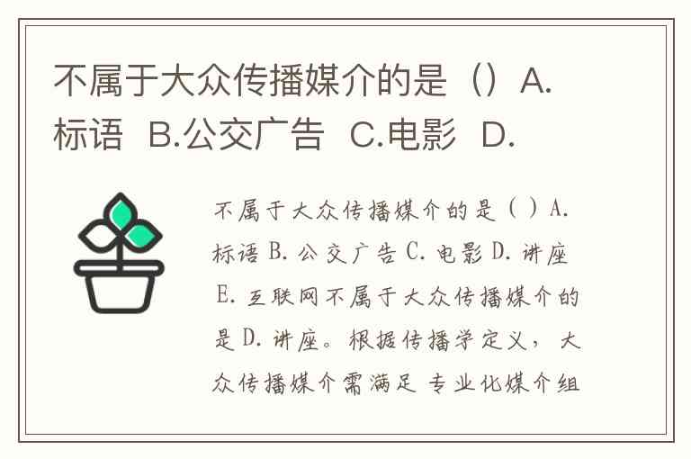 不属于大众传播媒介的是()A.标语 B.公交广告 C.电影 D.讲座 E.互联网