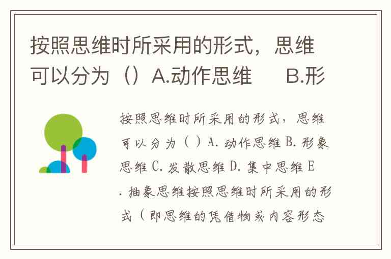 按照思维时所采用的形式,思维可以分为()A.动作思维 B.形象思维 C.发散思维 D.集中思维 E.抽象思维