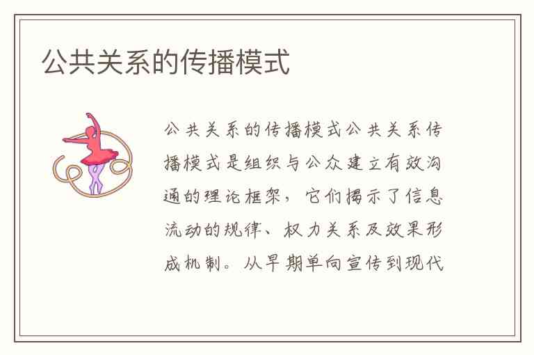 公共关系传播模式是组织与公众建立有效沟通的理论框架,它们揭示了信息流动的规律、权力关系及效果形成机制。从早期单向宣传到现代双向对话,这些模式的演变反映了公关从“操纵舆论”到“构建信任”的价值转变。以下是经过时间检验且仍具实践价值的核心传播模式: