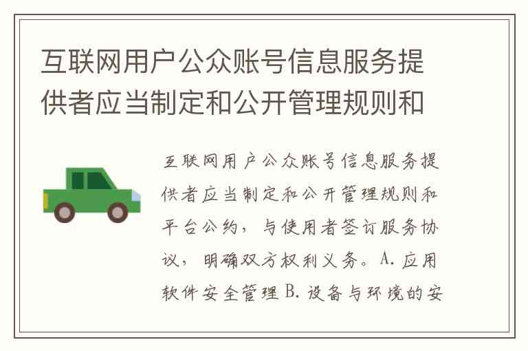 互联网用户公众账号信息服务提供者应当制定和公开管理规则和平台公约,与使用者签订服务协议,明确双方权利义务。A.应用软件安全管理 B.设备与环境的安全管理 C.信息内容安全管理 D.计算机网络安全管理