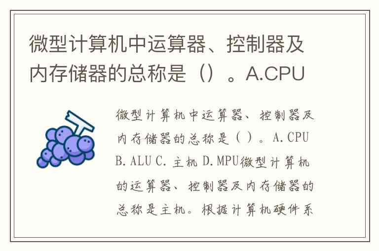 微型计算机的运算器、控制器及内存储器的总称是主机。根据计算机硬件系统的组成,CPU(中央处理器)由运算器和控制器组成,而主机则是CPU与内存储器的统称。这一概念明确区分了核心处理与存储部件(主机)与外部设备(如显示器、键盘等)。
