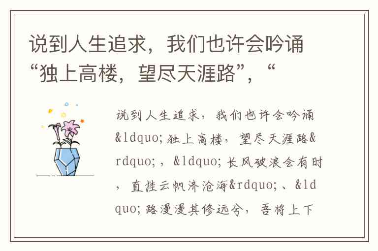 从文学发展脉络看,唐诗讲究格律对仗,李白的诗句展现了盛唐的豪迈气象;宋词则更注重长短句的灵活韵律,晏殊的“独上高楼”以含蓄笔法勾勒出追寻理想的孤独与坚定,被王国维在《人间词话》列为人生三境界之首;楚辞作为先秦时期的浪漫主义源头,屈原的诗句以“兮”字为标志,充满求索精神,与前两者共同构成中国古典文学的三座高峰。这种从唐到宋再溯源先秦的文学跨越,恰似中国人对理想追求的古今回响——既有唐诗的激情奋进,又有宋词的深沉省思,更有楚辞的执着探索。