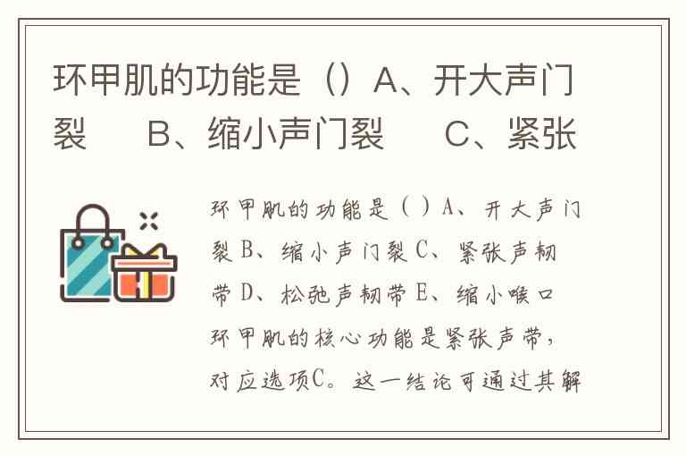 环甲肌的功能是()A、开大声门裂 B、缩小声门裂 C、紧张声韧带 D、松弛声韧带 E、缩小喉口