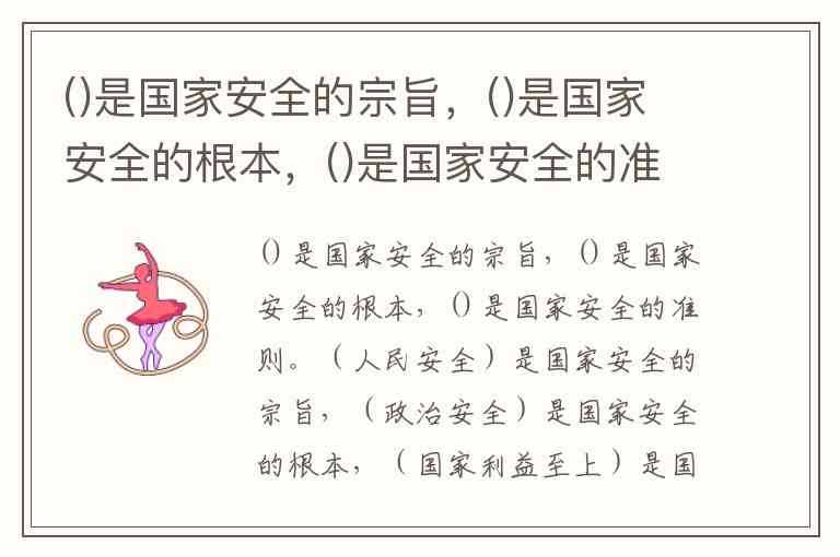 (人民安全)是国家安全的宗旨,(政治安全)是国家安全的根本,(国家利益至上)是国家安全的准则。这一核心框架源自习近平总书记提出的总体国家安全观,是新时代中国国家安全工作的根本遵循。