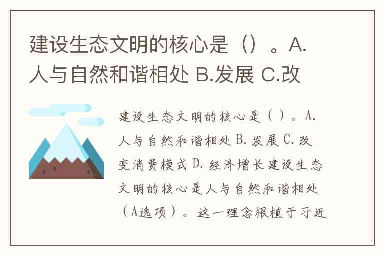 建设生态文明的核心是()。A.人与自然和谐相处 B.发展 C.改变消费模式 D.经济增长