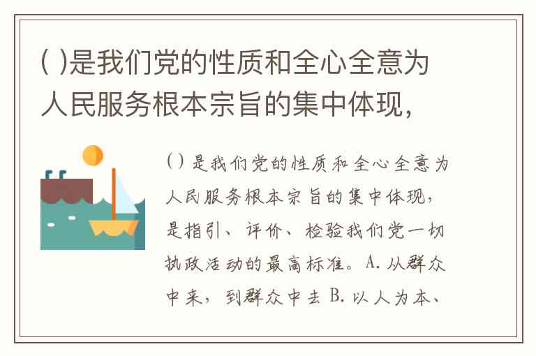 ( )是我们党的性质和全心全意为人民服务根本宗旨的集中体现,是指引、评价、检验我们党一切执政活动的最高标准。A.从群众中来,到群众中去 B.以人为本、执政为民 C.一切从实际出发 D.为人民服务