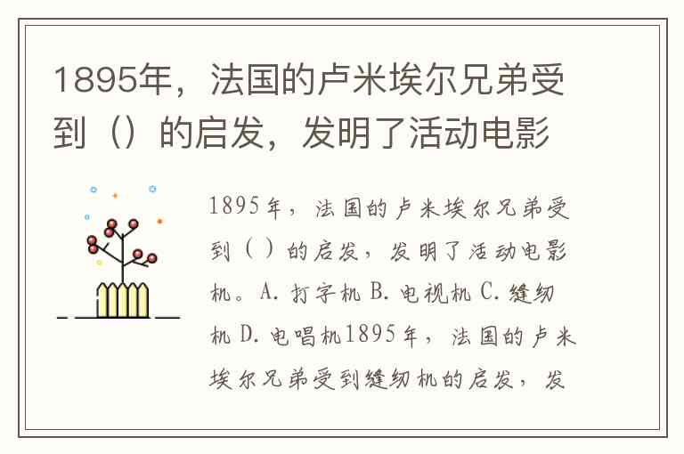 1895年,法国的卢米埃尔兄弟受到()的启发,发明了活动电影机。A.打字机 B.电视机 C.缝纫机 D.电唱机