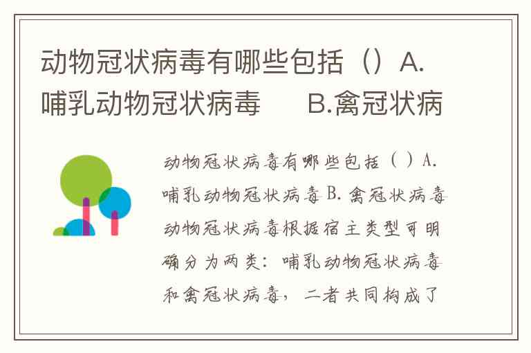 动物冠状病毒有哪些包括()A.哺乳动物冠状病毒 B.禽冠状病毒
