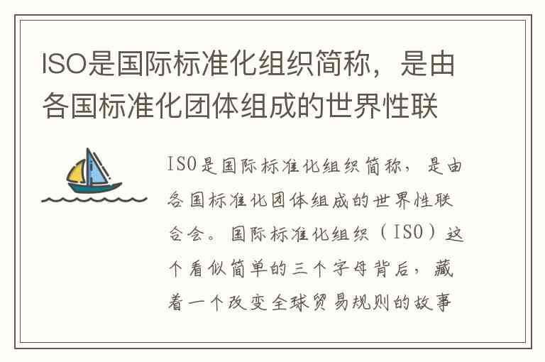 ISO是国际标准化组织简称,是由各国标准化团体组成的世界性联合会。