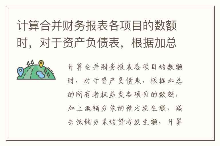 计算合并财务报表各项目的数额时,对于资产负债表,根据加总的所有者权益类各项目的数额,加上抵销分录的借方发生额,减去抵销分录的贷方发生额,计算得出所有者权益类各项目的合并数额。()