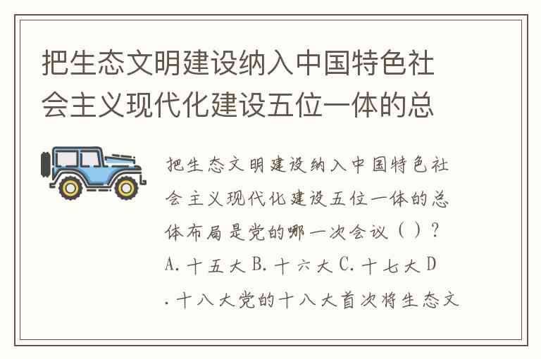 把生态文明建设纳入中国特色社会主义现代化建设五位一体的总体布局是党的哪一次会议()?A.十五大 B.十六大 C.十七大 D.十八大