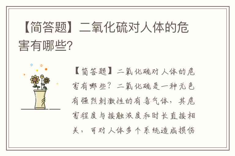 二氧化硫是一种无色有强烈刺激性的有毒气体,其危害程度与接触浓度和时长直接相关,可对人体多个系统造成损伤。短期高浓度吸入会引发急性中毒,长期低浓度接触则增加慢性疾病风险,世界卫生组织已将其列为3类致癌物。