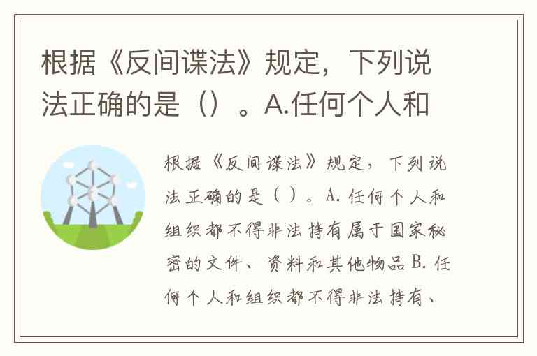 根据《反间谍法》规定,下列说法正确的是()。A.任何个人和组织都不得非法持有属于国家秘密的文件、资料和其他物品 B.任何个人和组织都不得非法持有、使用间谍活动特殊需要的专用间谍器材 C.任何公民和组织都应当保守所知悉的有关反间谍工作的国家秘密 D.专用间谍器材由国务院国家安全主管部门依照国家有关规定确认