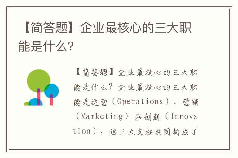 企业最核心的三大职能是运营(Operations)、营销(Marketing) 和创新(Innovation),这三大支柱共同构成了商业组织创造并传递价值的完整闭环。运营职能负责将资源高效转化为产品或服务,是企业实现价值的基础;营销职能连接企业与市场,通过理解需求、塑造认知和促进交易实现价值传递;创新职能则驱动持续进化,通过技术突破、模式变革或体验升级创造新价值空间。三者相互依存:没有运营的效率,营销无法兑现承诺;没有营销的洞察,创新可能偏离需求;没有创新的驱动,运营和营销终将失去竞争力。