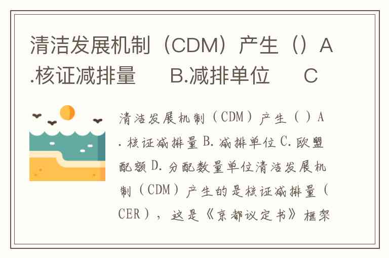 清洁发展机制(CDM)产生()A.核证减排量 B.减排单位 C.欧盟配额 D.分配数量单位