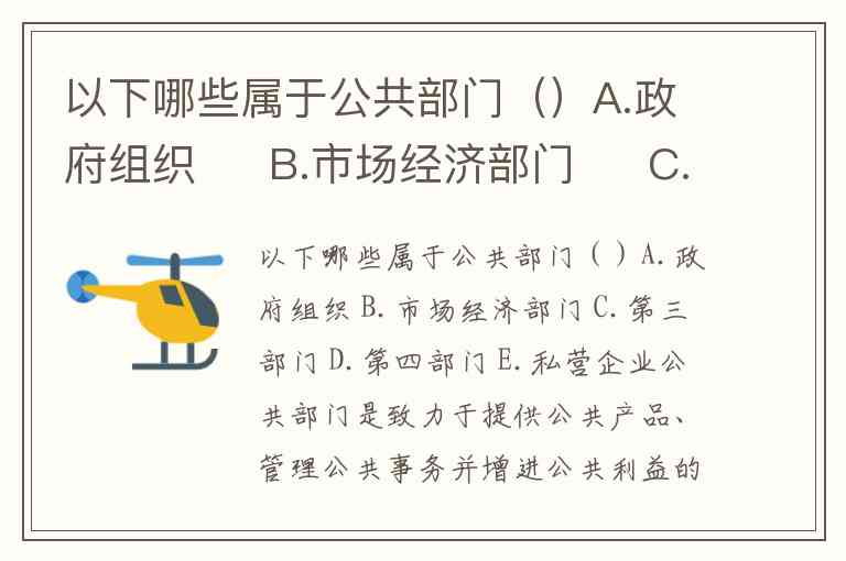 以下哪些属于公共部门()A.政府组织 B.市场经济部门 C.第三部门 D.第四部门 E.私营企业