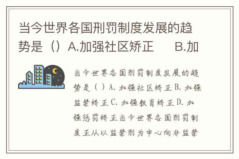 当今世界各国刑罚制度发展的趋势是()A.加强社区矫正 B.加强监禁矫正 C.加强教育矫正 D.加强惩罚矫正
