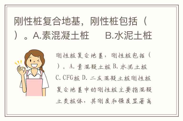 刚性桩复合地基,刚性桩包括()。A.素混凝土桩 B.水泥土桩 C.CFG桩 D.二灰混凝土桩