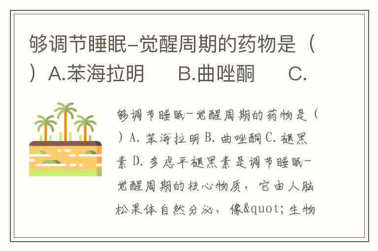 够调节睡眠-觉醒周期的药物是()A.苯海拉明 B.曲唑酮 C.褪黑素 D.多虑平