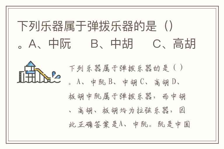 下列乐器属于弹拨乐器的是()。A、中阮 B、中胡 C、高胡 D、板胡