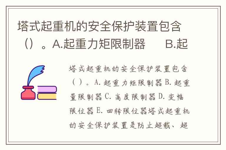 塔式起重机的安全保护装置包含()。A.起重力矩限制器 B.起重量限制器 C.高度限制器 D.变幅限位器 E.回转限位器