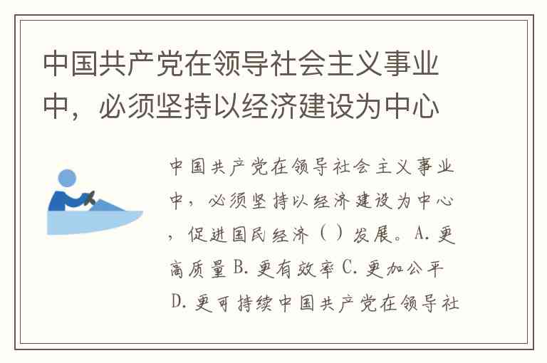 中国共产党在领导社会主义事业中,必须坚持以经济建设为中心,促进国民经济()发展。A.更高质量 B.更有效率 C.更加公平 D.更可持续