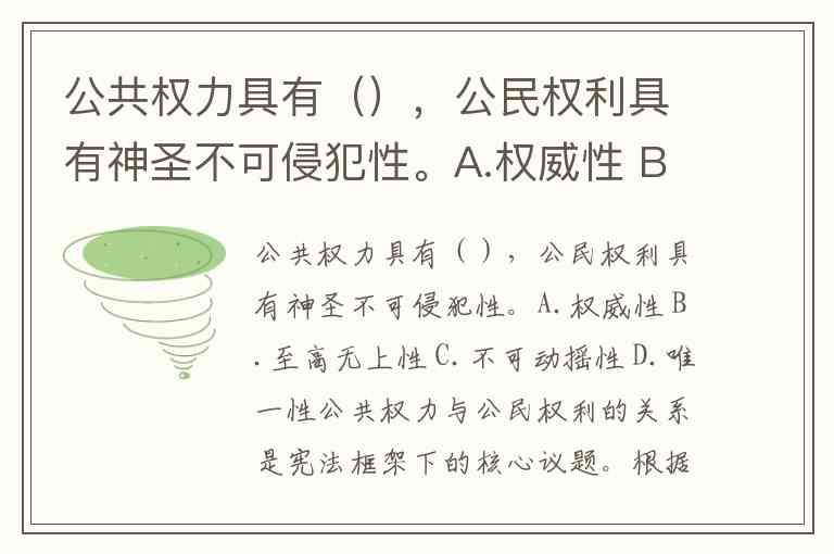 公共权力具有(),公民权利具有神圣不可侵犯性。A.权威性 B.至高无上性 C.不可动摇性 D.唯一性