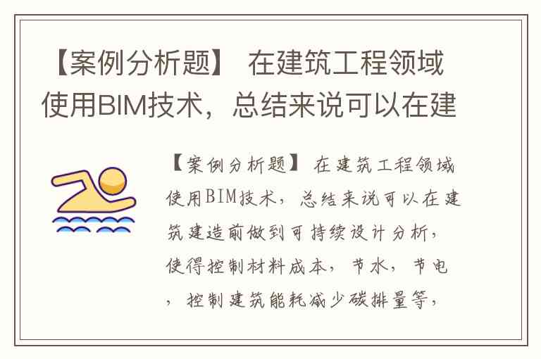 【案例分析题】 在建筑工程领域使用BIM技术,总结来说可以在建筑建造前做到可持续设计分析,使得控制材料成本,节水,节电,控制建筑能耗减少碳排量等,到后期的雨水收集量计算、太阳能采集量,建筑材料老化更新等工作做到最合理化。在倡导绿色环保的今天,建筑建造需要转向实用更清洁更有效的技术,尽可能减少能源和其他自然资源的消耗,建立极少产生废料和污染物的工艺和技术系统。以BIM技术为手段,用绿色的观念和方式进行建筑的规划、设计,采用BIM技术在施工和运营阶段促进绿色指标的落实,促进整个行业的进一步资源优化整合。BIM技术在项目中的系统应用,优化了施工项目传统的生产工艺,改进了传统的施工总承包管理方法,总体提升了项目施工生产效率,节约了施工工期,降低项目运作成本,是推行绿色建筑的必行之道。 绿色施工中的“四节一环保”具体指的什么?