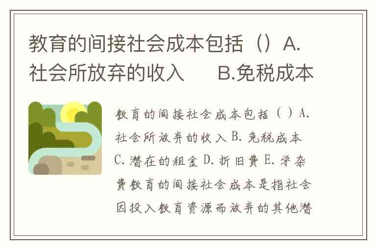 教育的间接社会成本包括()A.社会所放弃的收入 B.免税成本 C.潜在的租金 D.折旧费 E.学杂费