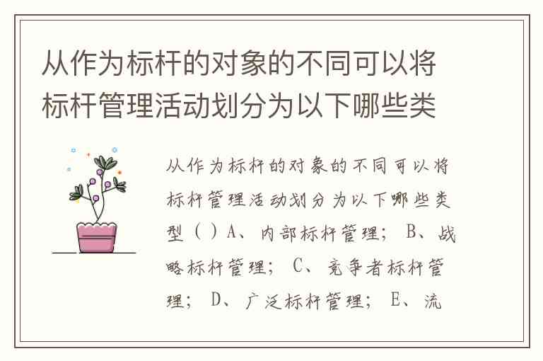 而战略标杆管理(选项B) 和流程标杆管理(选项E) 更多属于按“学习内容”的分类——前者聚焦战略规划,后者侧重具体流程优化,与题干要求的“标杆对象不同”不属于同一划分维度。例如战略对标可能同时涉及竞争对标和跨行业对标两种对象类型。