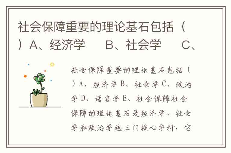 社会保障重要的理论基石包括()A、经济学 B、社会学 C、政治学 D、语言学 E、社会保障