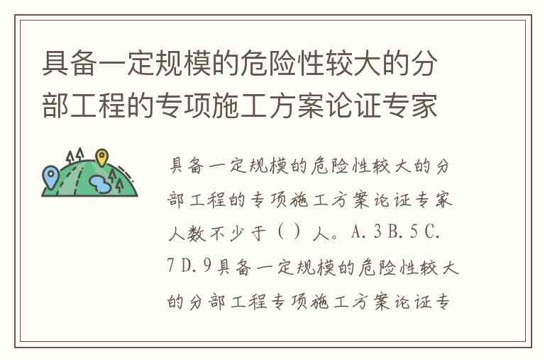 具备一定规模的危险性较大的分部工程的专项施工方案论证专家人数不少于()人。A.3 B.5 C.7 D.9