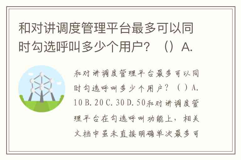 和对讲调度管理平台最多可以同时勾选呼叫多少个用户?()A.10 B.20 C.30 D.50