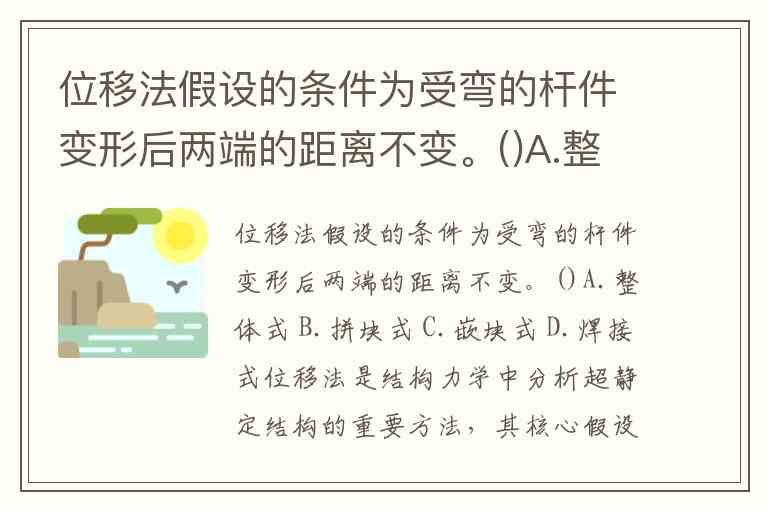 该问题表述中选项(整体式、拼块式等)与题干核心(位移法基本假设)不匹配,可能存在题目设置误差。正确理解位移法的忽略轴向变形假设,比纠结选项更具工程意义。