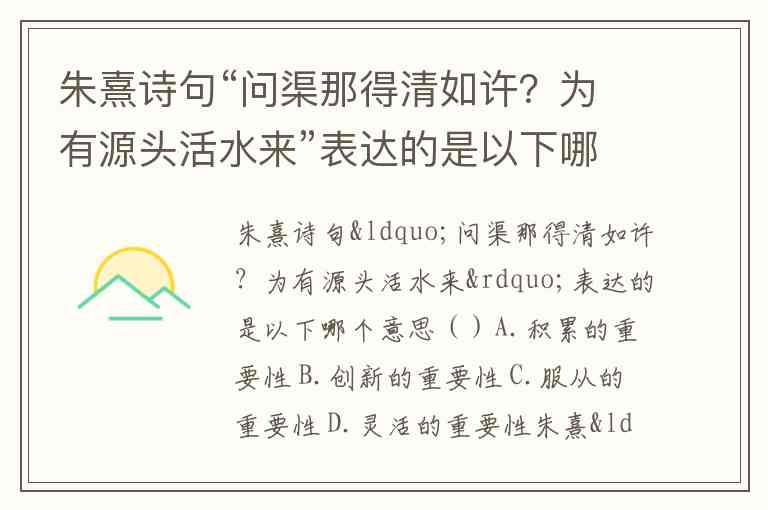 朱熹诗句“问渠那得清如许?为有源头活水来”表达的是以下哪个意思()A.积累的重要性 B.创新的重要性 C.服从的重要性 D.灵活的重要性