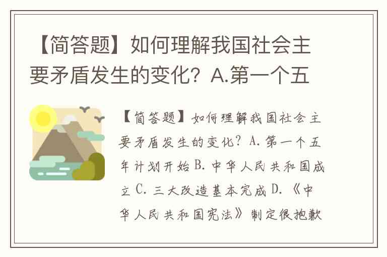 【简答题】如何理解我国社会主要矛盾发生的变化?A.第一个五年计划开始 B.中华人民共和国成立 C.三大改造基本完成 D.《中华人民共和国宪法》制定
