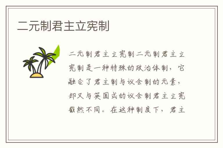 二元制君主立宪制是一种特殊的政治体制,它融合了君主制与议会制的元素,却又与英国式的议会制君主立宪截然不同。在这种制度下,君主并非象征性元首,而是掌握实质性权力,与议会形成“双权力中心”——君主控制行政、军事等核心大权,议会则徒具立法形式却难以制衡君主。这种政体本质上是资产阶级与封建势力妥协的产物,常见于封建传统浓厚、资产阶级革命不够彻底的国家。