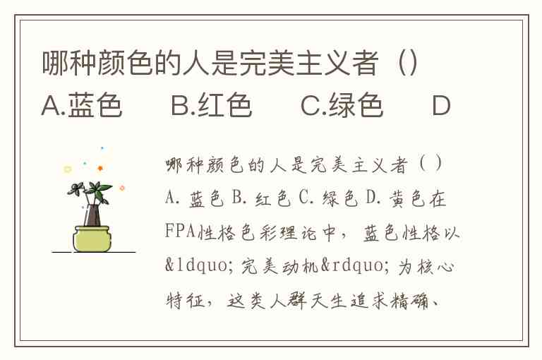 哪种颜色的人是完美主义者()A.蓝色 B.红色 C.绿色 D.黄色