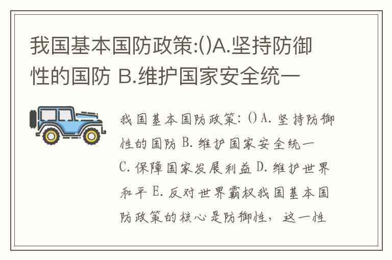 我国基本国防政策:()A.坚持防御性的国防 B.维护国家安全统一 C.保障国家发展利益 D.维护世界和平 E.反对世界霸权