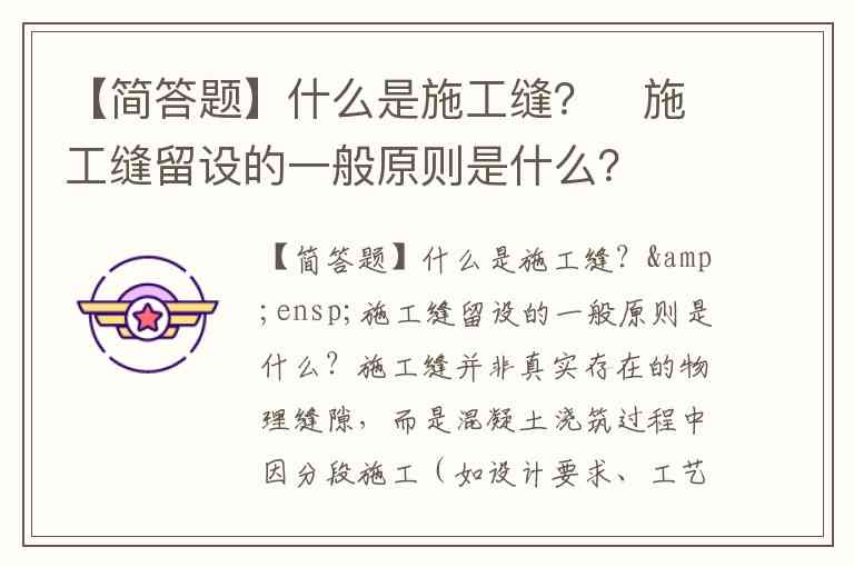 【简答题】什么是施工缝? 施工缝留设的一般原则是什么?
