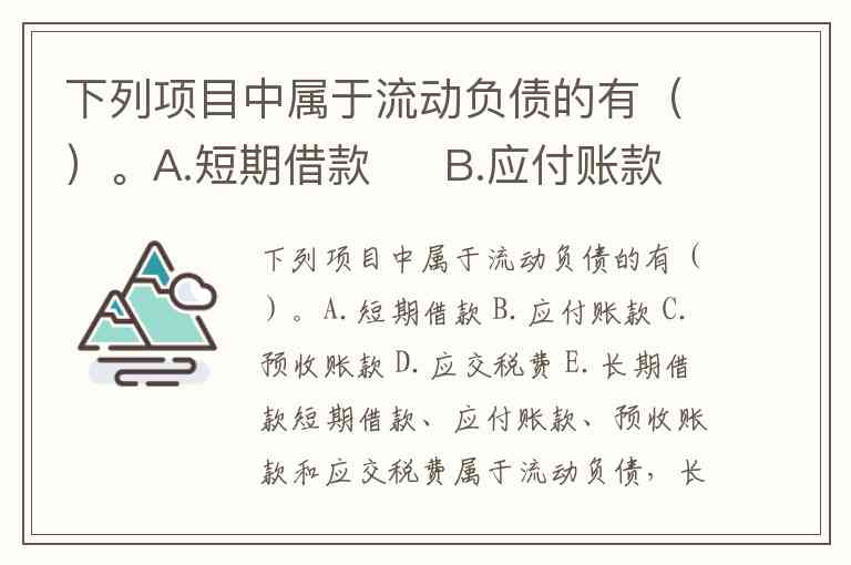 下列项目中属于流动负债的有()。A.短期借款 B.应付账款 C.预收账款 D.应交税费 E.长期借款