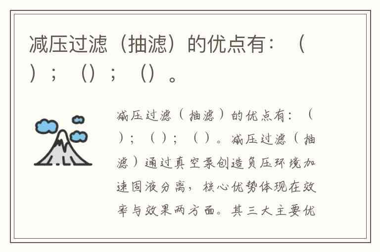减压过滤(抽滤)的优点有:();();()。